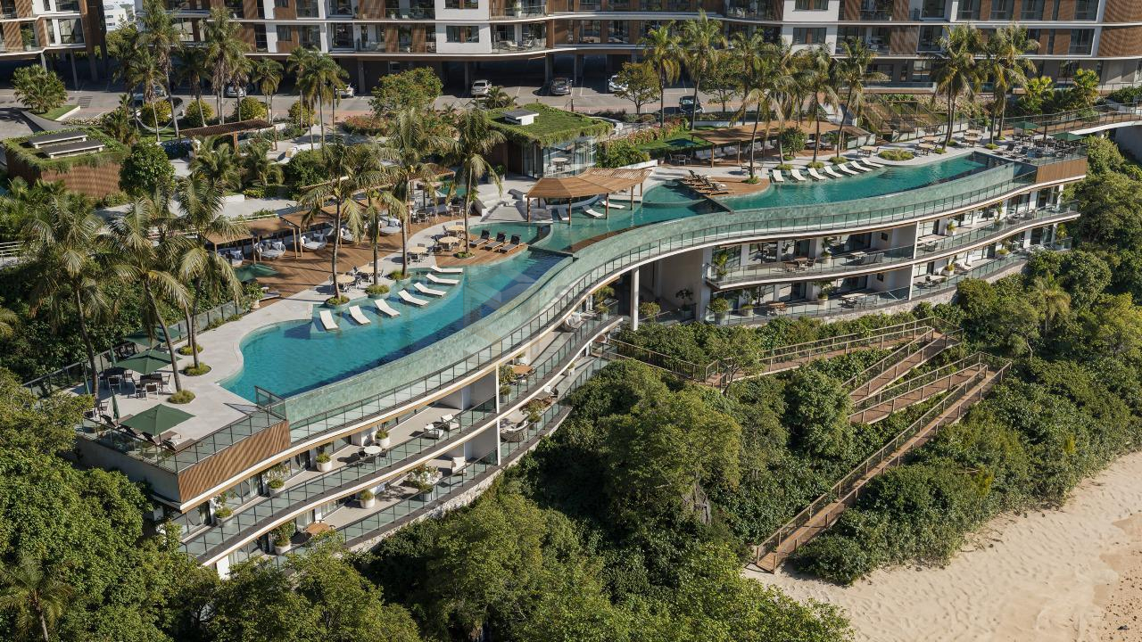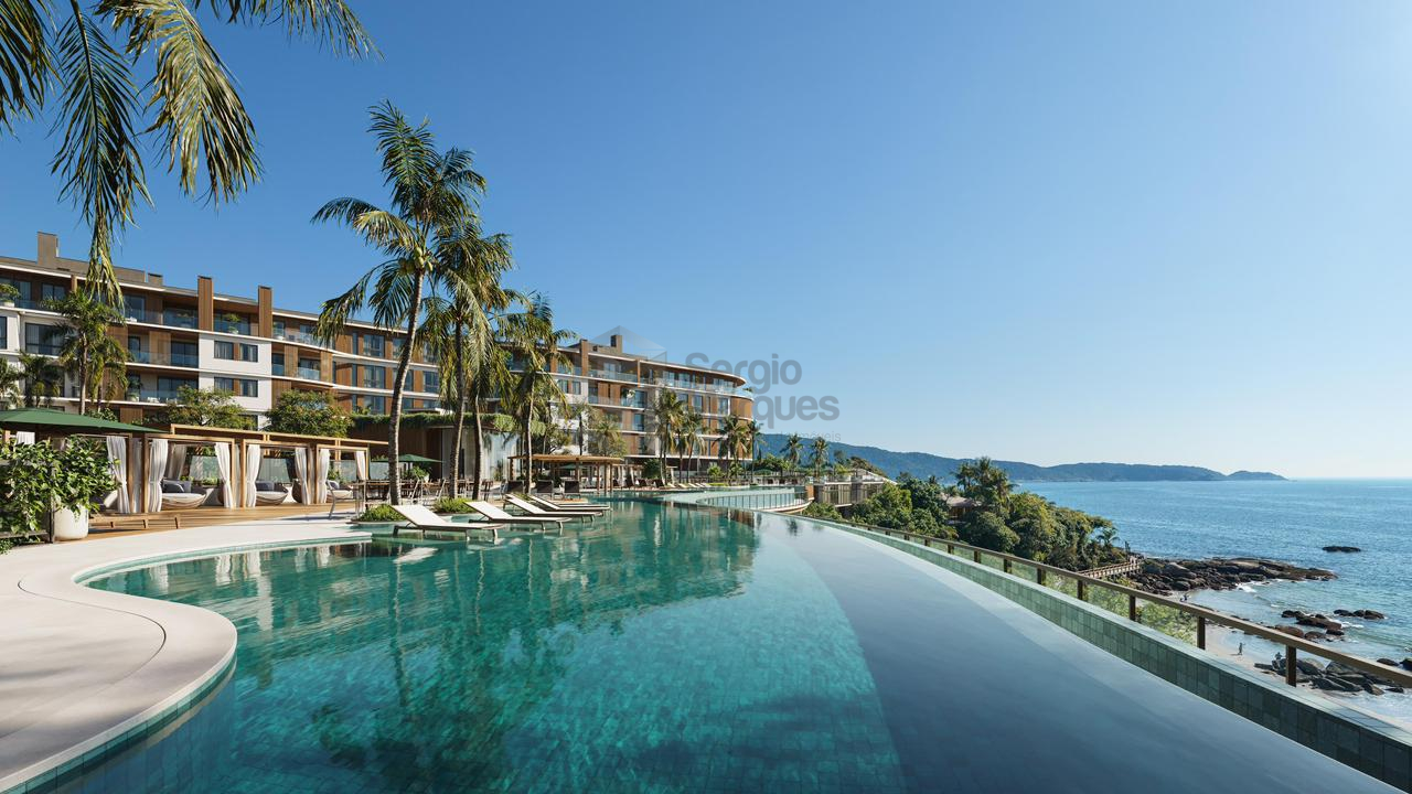 📍 Localizado à beira-mar na Praia do Ribeiro em uma região privativa e tranquila, o empreendimento conta com 40.000m² de terreno, sendo 18.000m² em área de natureza preservada.