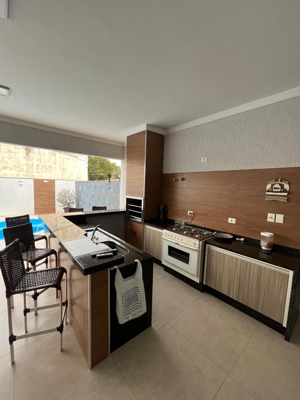 ✅ Área Gourmet vinculada a residência com água quente e cozinha americana completa lavaDo